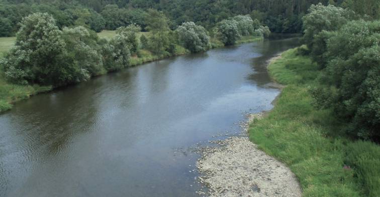 Blick nach beiden Seiten von der Brücke auf die Berounka ist sehr hübsch. Die