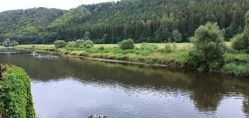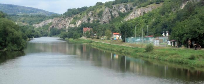 der Pension in Srbsko geht man gerade mal 250 m über die Berounka-Brücke und