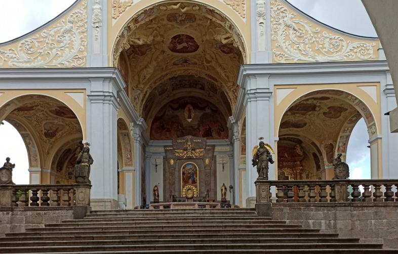 den in der Nähe gelegenen „Heiligen Berg“ (Svatá hora), ein Wallfahrtsort,