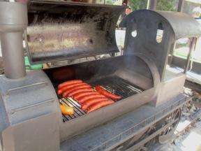brütender Hitze schlendern wir abwärts. Appetitlicher Räucherduft zieht an unseren