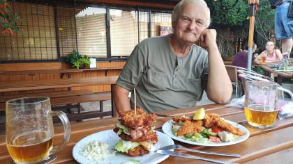 in 40 min hinter uns bnringen, aber das Essen war wieder absolut klasse! Bramborák in zwei Etagen mit Hühnchenfilet